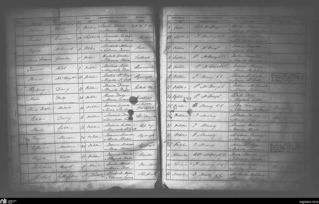 Frenchpark; County of Roscommon; Diocese of Elphin. Baptisms, Sep. 1873 to Nov. 1873