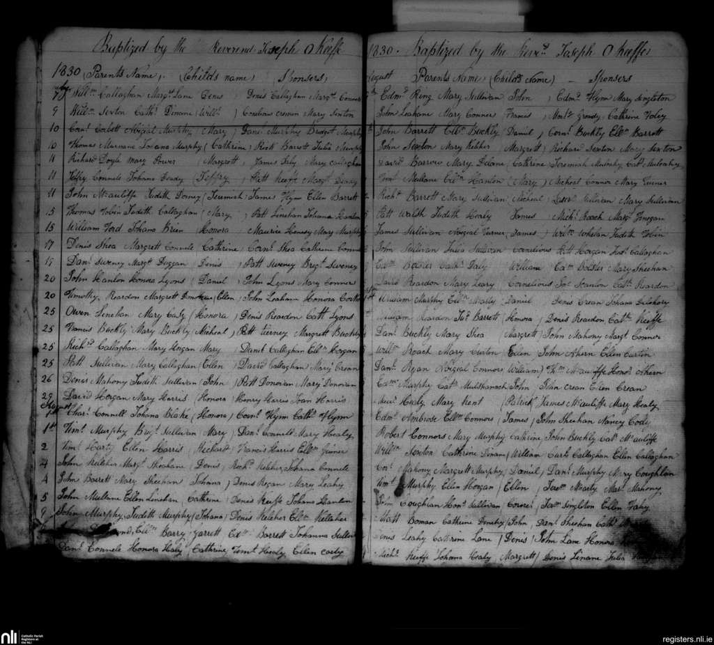 Glountane; County of Cork; Diocese of Cloyne. Baptisms, July 1830 to Sep. 1830