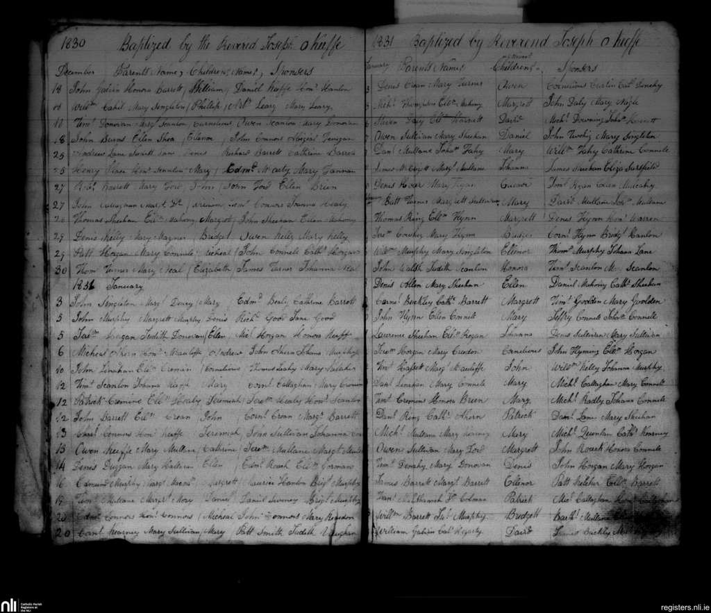 Glountane; County of Cork; Diocese of Cloyne. Baptisms, Dec. 1830 to Feb. 1831