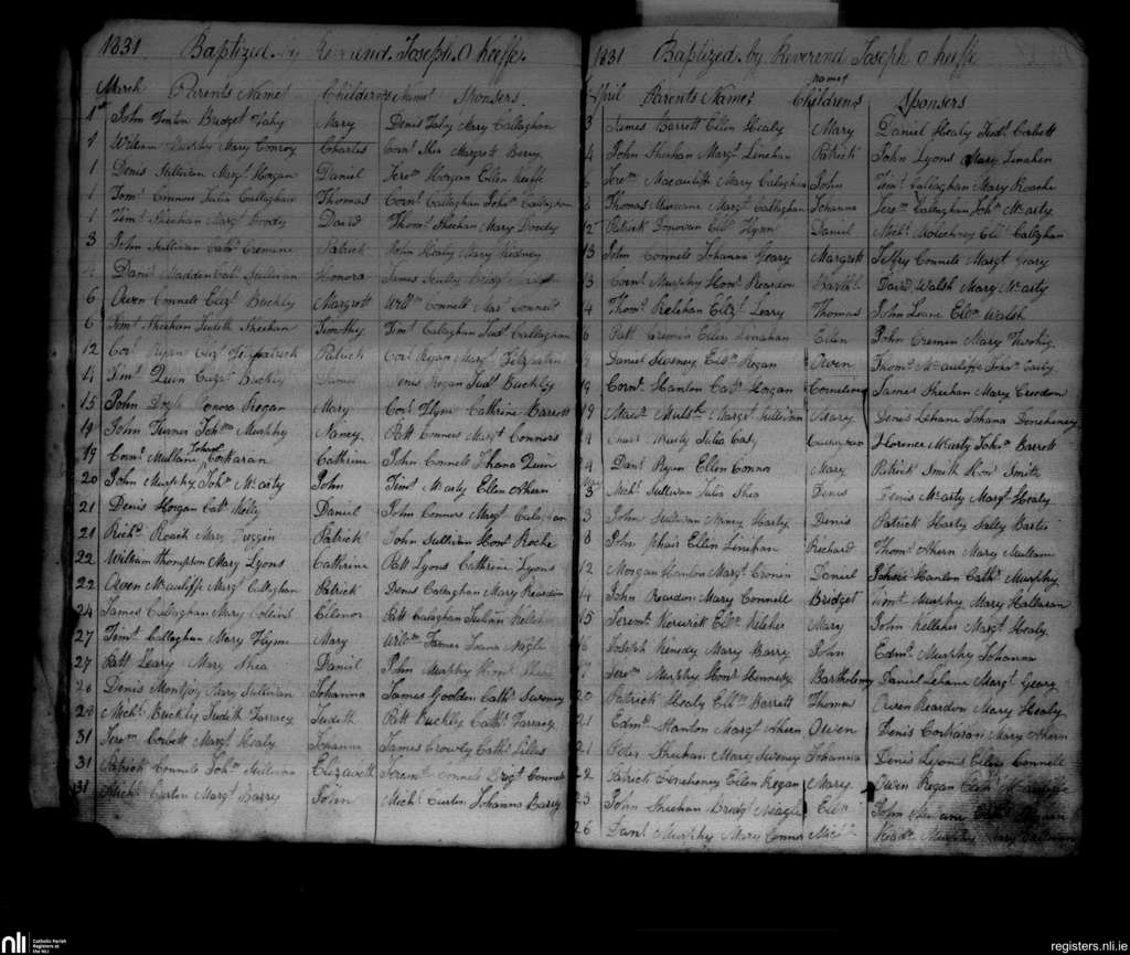 Glountane; County of Cork; Diocese of Cloyne. Baptisms, Mar. 1831 to May 1831