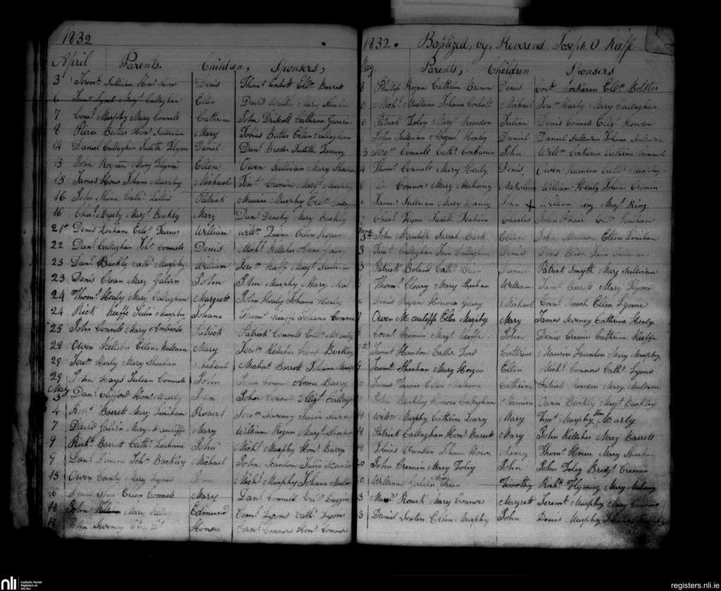 Glountane; County of Cork; Diocese of Cloyne. Baptisms, Apr. 1832 to June 1832