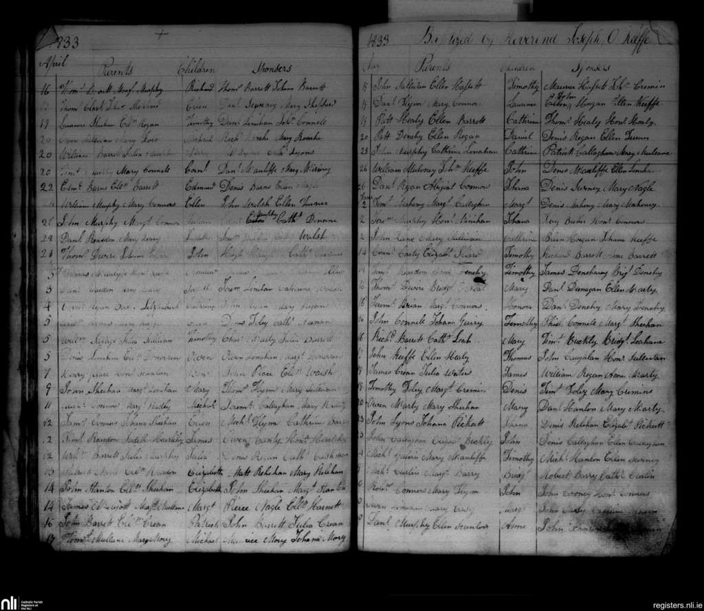 Glountane; County of Cork; Diocese of Cloyne. Baptisms, Apr. 1833 to June 1833