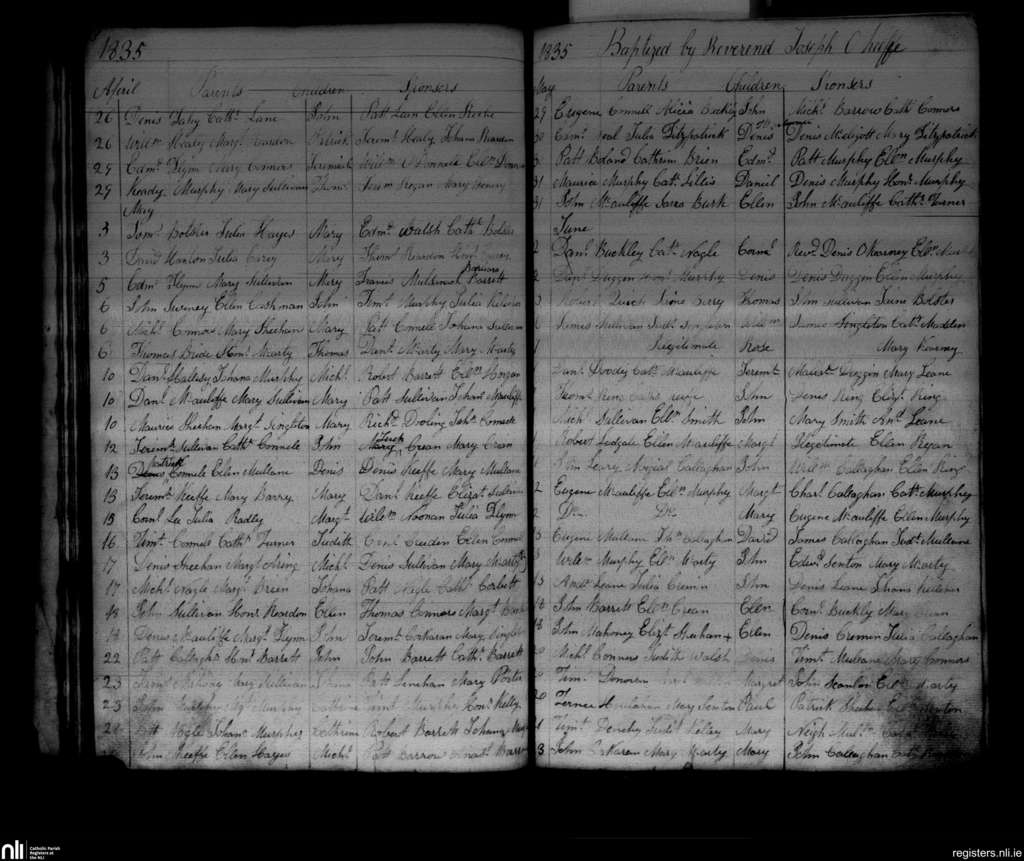 Glountane; County of Cork; Diocese of Cloyne. Baptisms, Apr. 1835 to June 1835