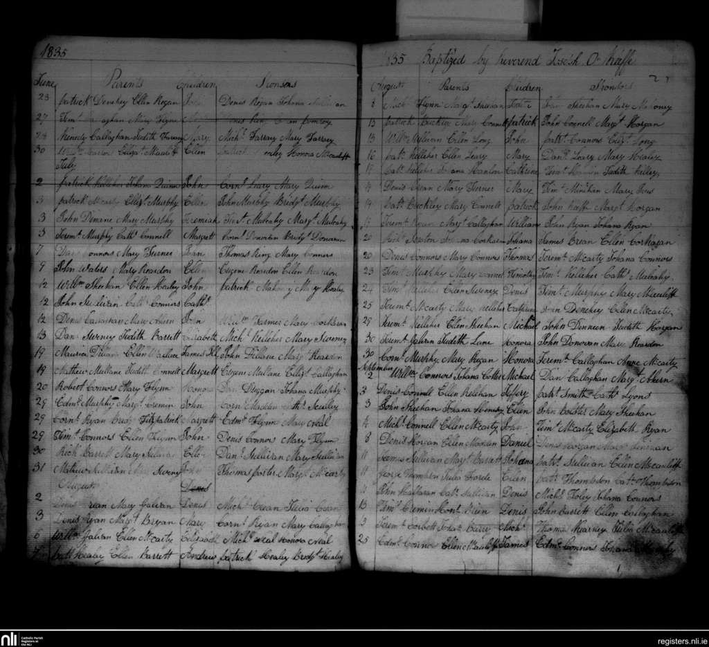 Glountane; County of Cork; Diocese of Cloyne. Baptisms, June 1835 to Sep. 1835