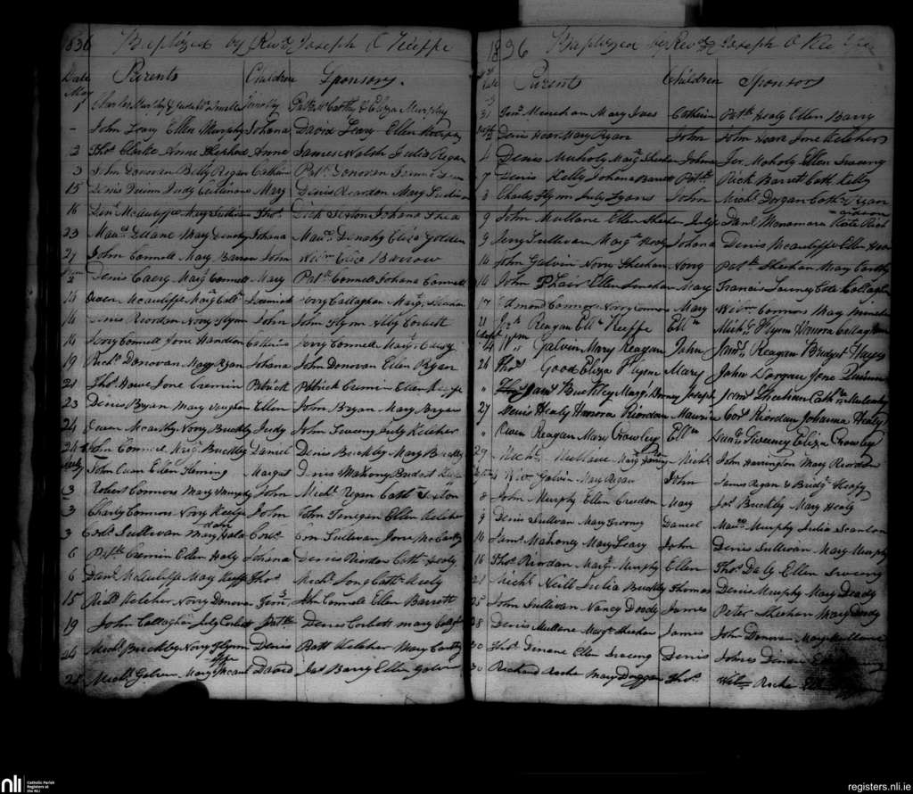 Glountane; County of Cork; Diocese of Cloyne. Baptisms, May 1836 to Oct. 1836