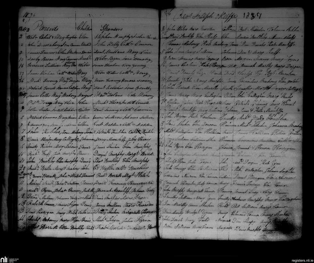 Glountane; County of Cork; Diocese of Cloyne. Baptisms, Oct. 1836 to Apr. 1837