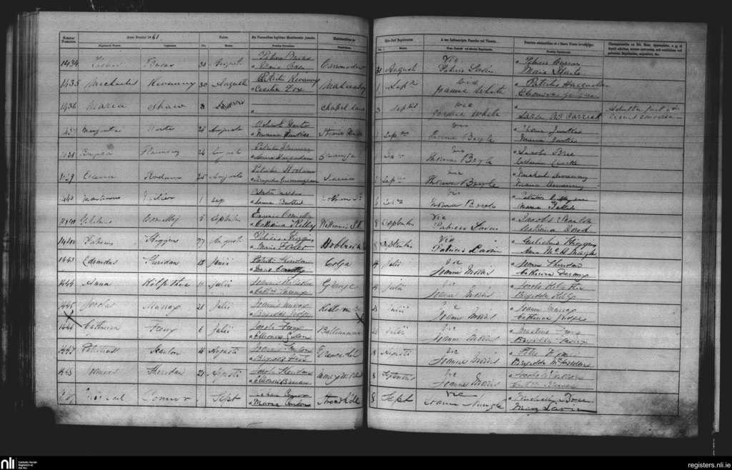 St. John's, Sligo; County of Sligo; Diocese of Elphin. Baptisms, July 1861 to Sep. 1861