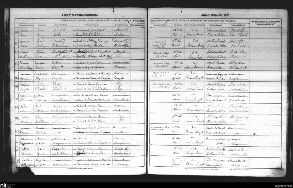 St. John's, Sligo; County of Sligo; Diocese of Elphin. Marriages, Feb. 1870 to June 1870