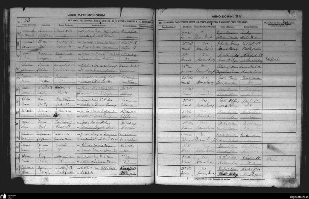 St. John's, Sligo; County of Sligo; Diocese of Elphin. Marriages, Jan. 1871 to Feb. 1871