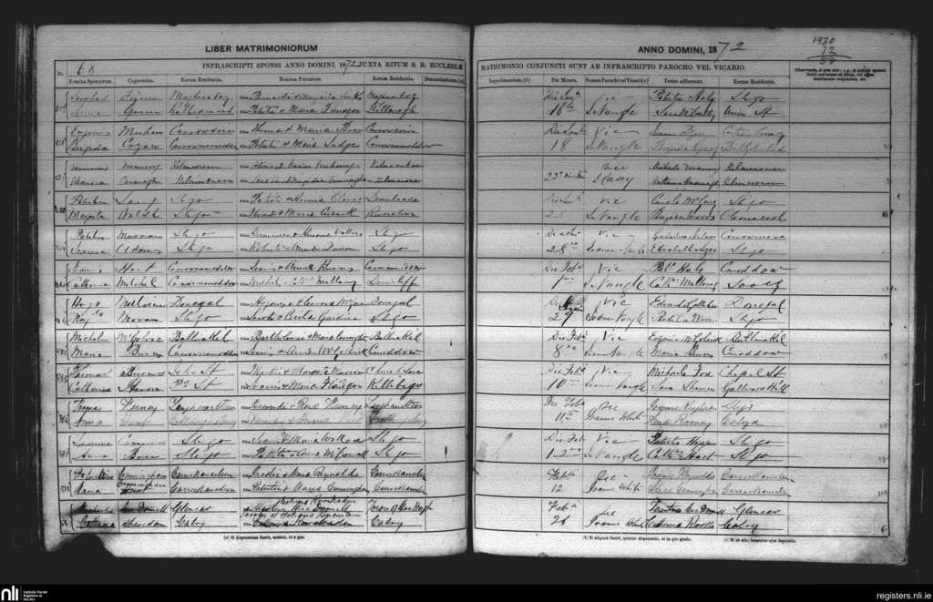 St. John's, Sligo; County of Sligo; Diocese of Elphin. Marriages, Jan. 1872 to Feb. 1872