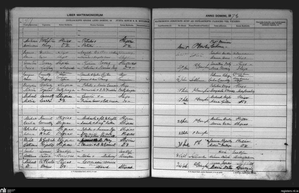 St. John's, Sligo; County of Sligo; Diocese of Elphin. Marriages, June 1873 to Sep. 1873