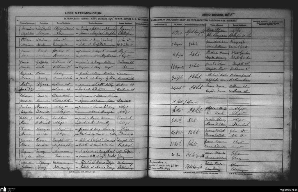 St. John's, Sligo; County of Sligo; Diocese of Elphin. Marriages, July 1875 to Nov. 1875