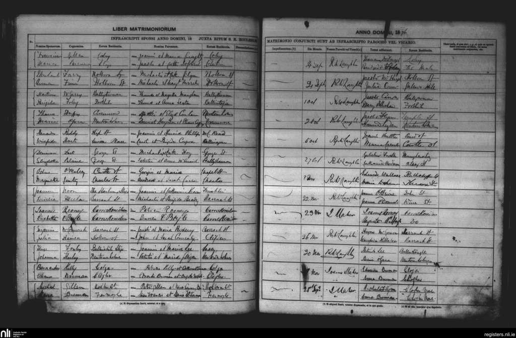 St. John's, Sligo; County of Sligo; Diocese of Elphin. Marriages, Sep. 1876 to Nov. 1876