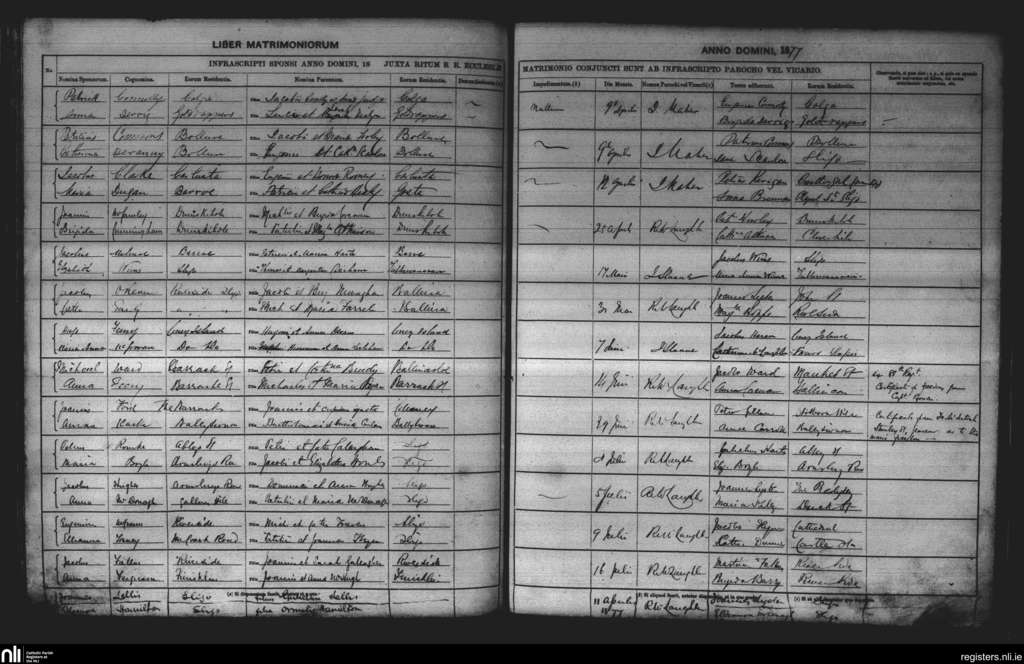 St. John's, Sligo; County of Sligo; Diocese of Elphin. Marriages, Apr. 1877 to July 1877