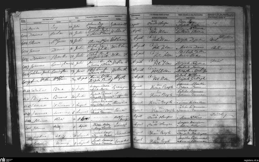 St. John's, Sligo; County of Sligo; Diocese of Elphin. Baptisms, Aug. 1865