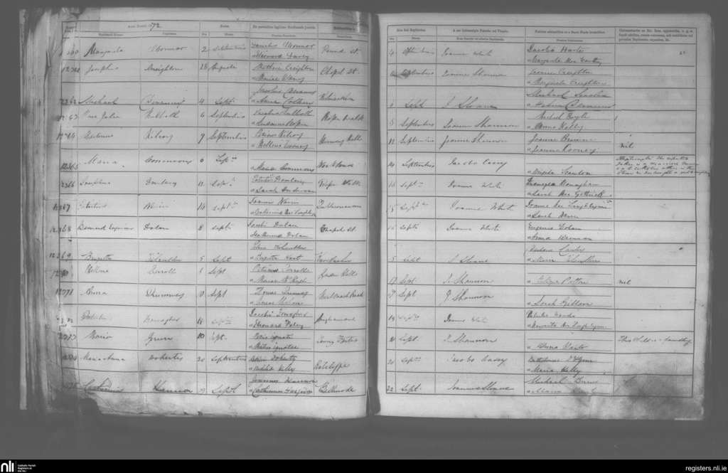 St. John's, Sligo; County of Sligo; Diocese of Elphin. Baptisms, Sep. 1872