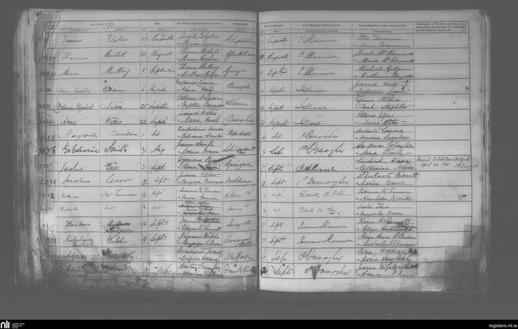 St. John's, Sligo; County of Sligo; Diocese of Elphin. Baptisms, Aug. 1873 to Sep. 1873