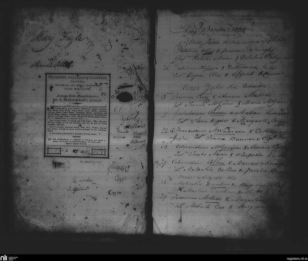 Strokestown; County of Roscommon; Diocese of Elphin. Marriages, June 1833 to July 1833
