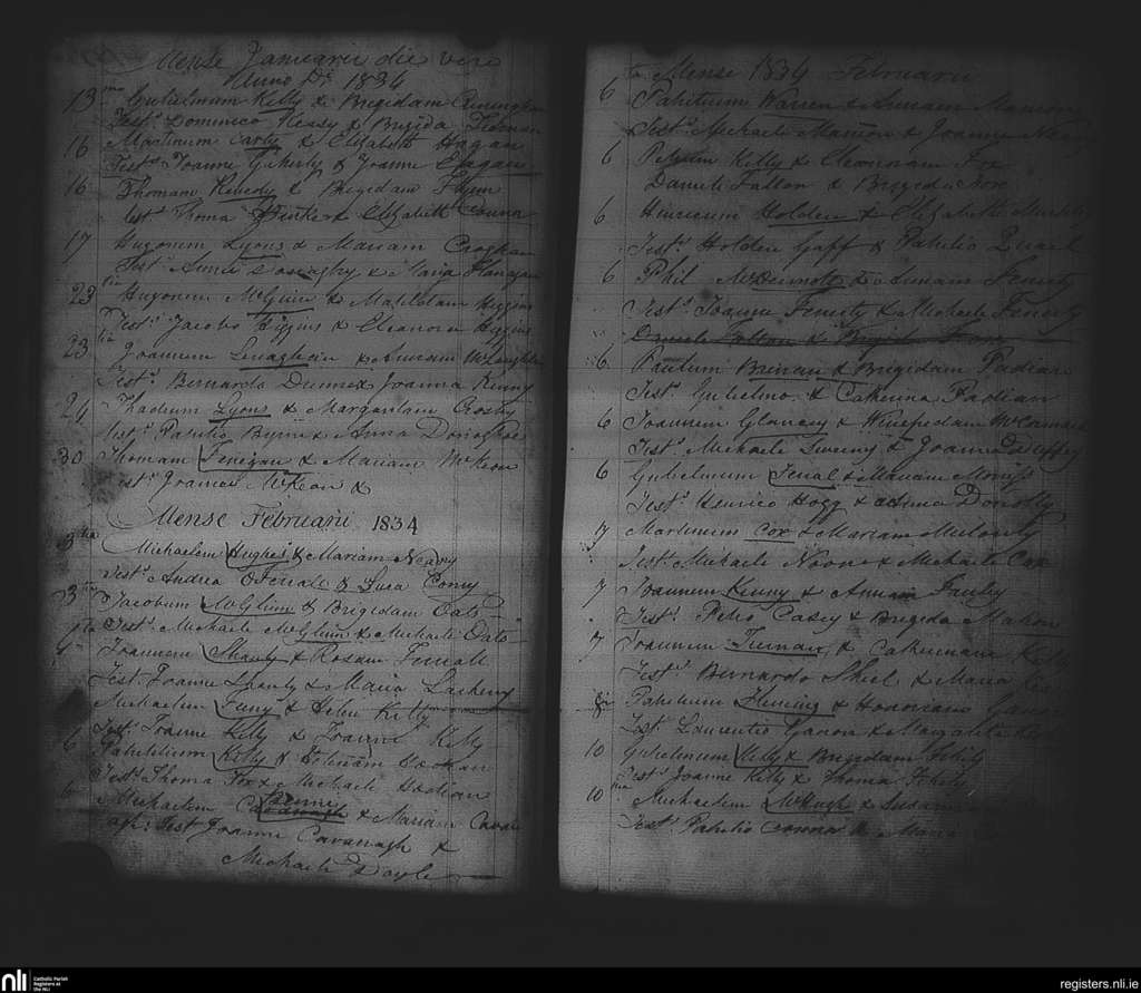 Strokestown; County of Roscommon; Diocese of Elphin. Marriages, Jan. 1834 to Feb. 1834