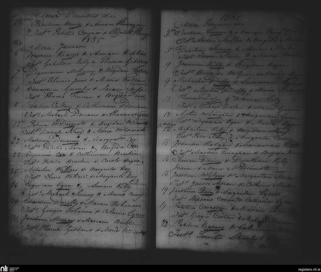 Strokestown; County of Roscommon; Diocese of Elphin. Marriages, Dec. 1834 to Feb. 1835