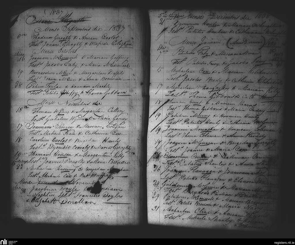 Strokestown; County of Roscommon; Diocese of Elphin. Marriages, Sep. 1837 to Jan. 1838
