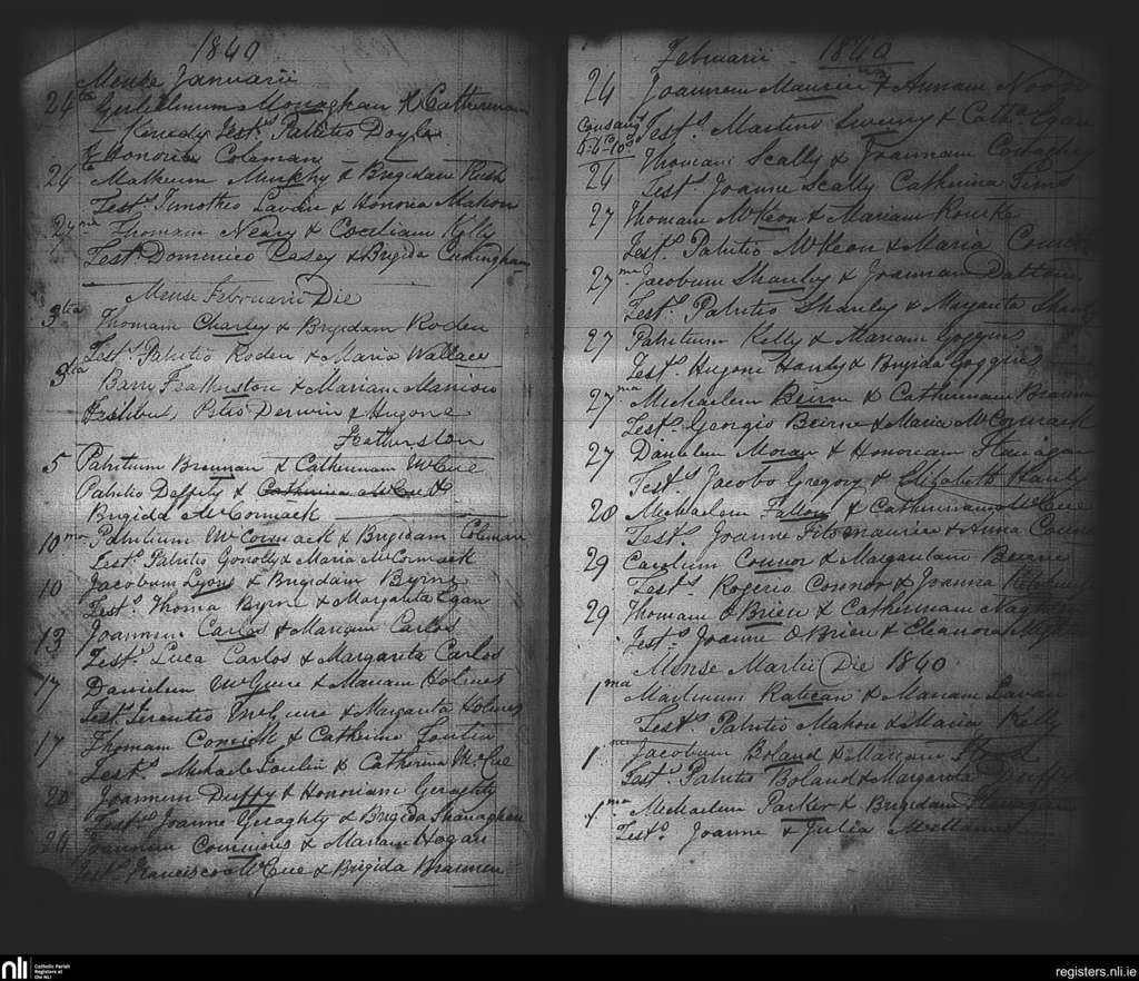 Strokestown; County of Roscommon; Diocese of Elphin. Marriages, Jan. 1840 to Mar. 1840
