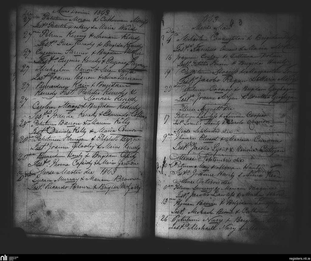 Strokestown; County of Roscommon; Diocese of Elphin. Marriages, Feb. 1843 to Oct. 1843