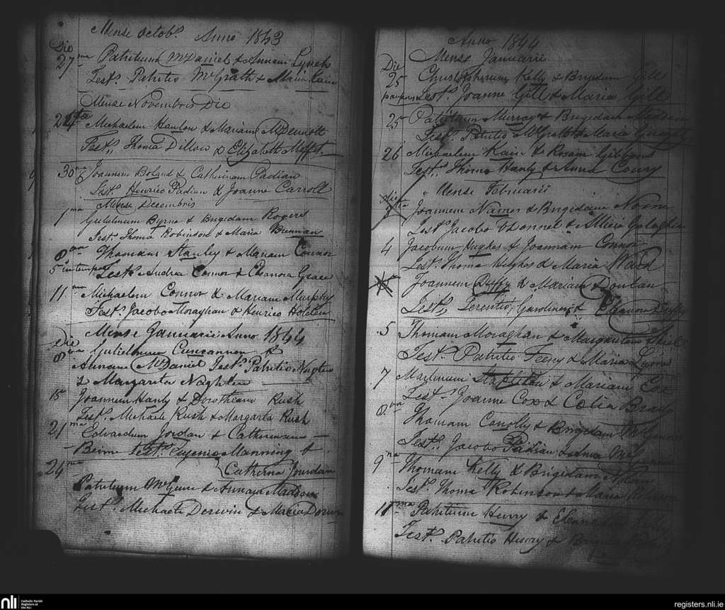 Strokestown; County of Roscommon; Diocese of Elphin. Marriages, Oct. 1843 to Feb. 1844