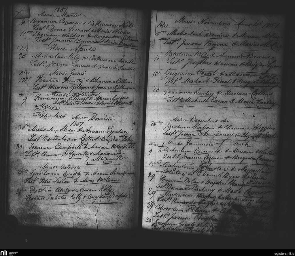 Strokestown; County of Roscommon; Diocese of Elphin. Marriages, Mar. 1851 to Jan. 1852