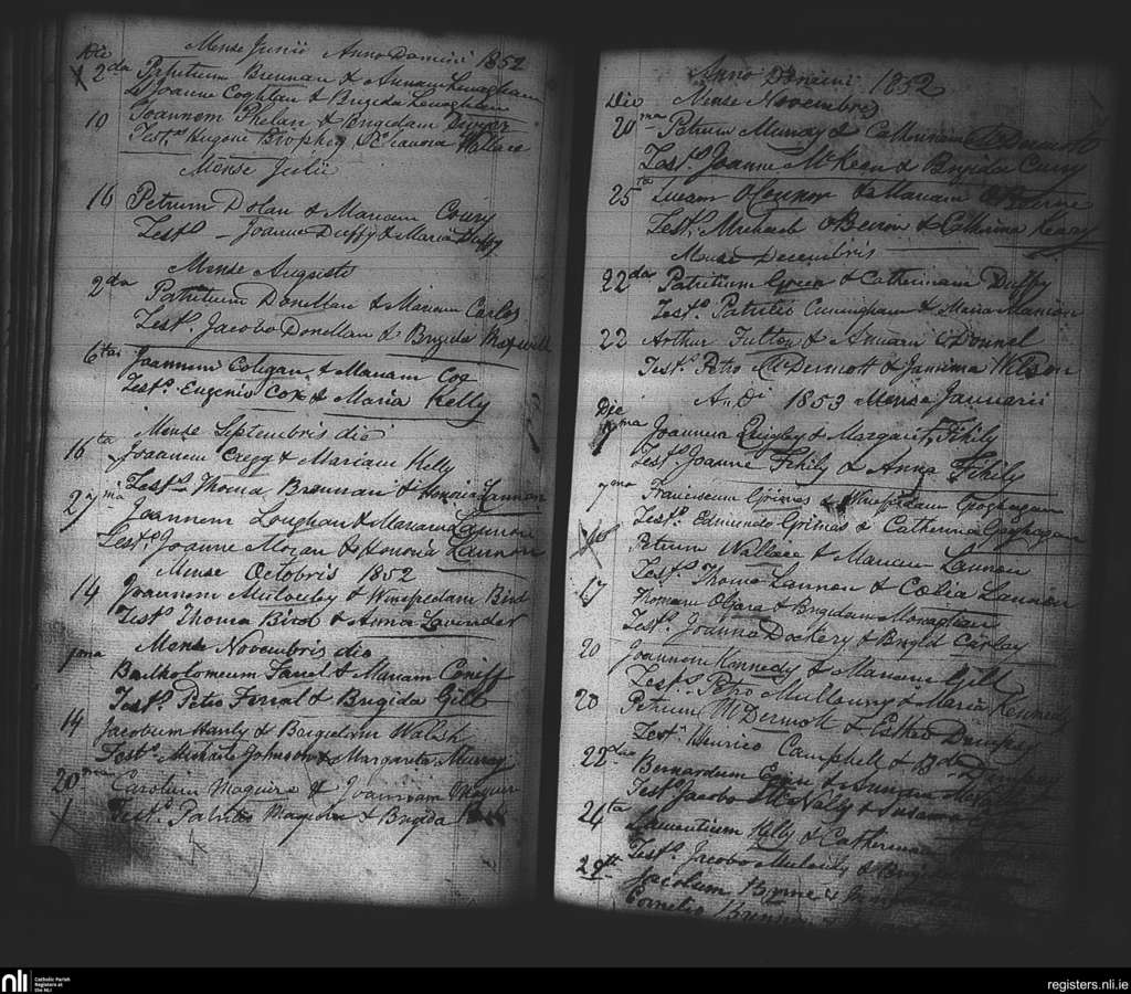 Strokestown; County of Roscommon; Diocese of Elphin. Marriages, June 1852 to Jan. 1853