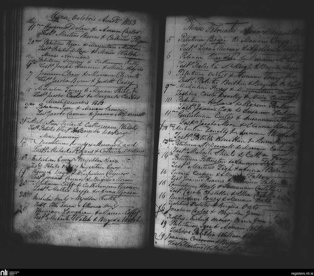 Strokestown; County of Roscommon; Diocese of Elphin. Marriages, Oct. 1853 to Feb. 1854