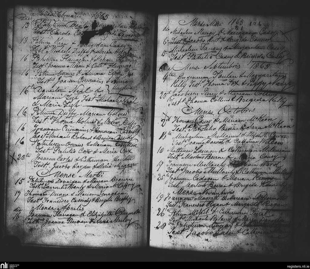 Strokestown; County of Roscommon; Diocese of Elphin. Marriages, Feb. 1863 to Nov. 1863