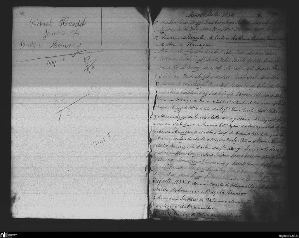 Strokestown; County of Roscommon; Diocese of Elphin. Baptisms, July 1835 to Aug. 1835