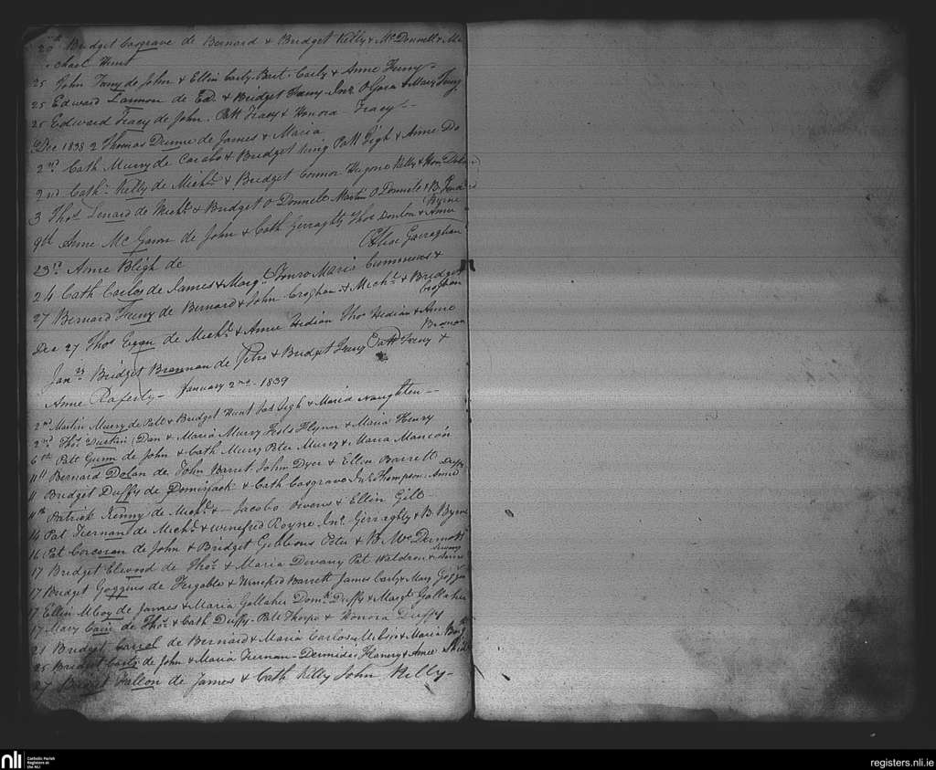 Strokestown; County of Roscommon; Diocese of Elphin. Baptisms, Nov. 1838 to Jan. 1839