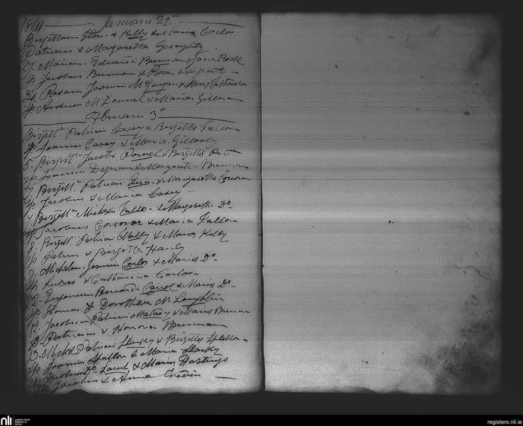 Strokestown; County of Roscommon; Diocese of Elphin. Baptisms, Jan. 1841 to Feb. 1841