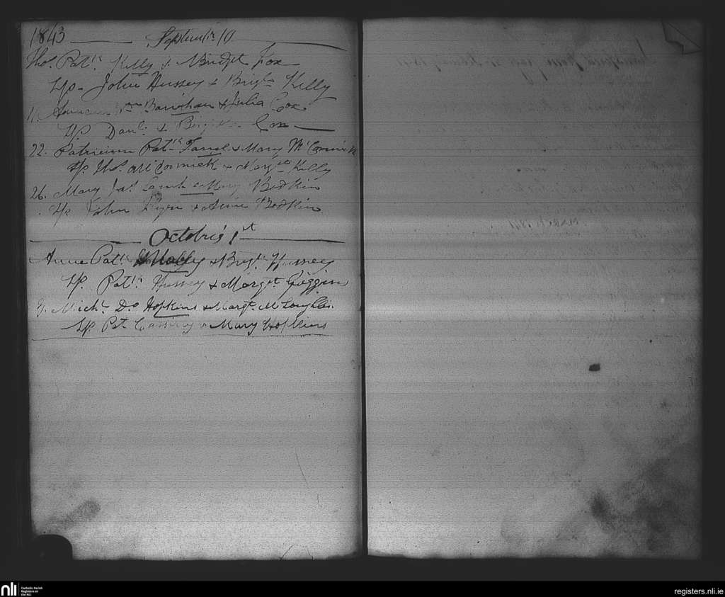 Strokestown; County of Roscommon; Diocese of Elphin. Baptisms, Sep. 1843 to Oct. 1843