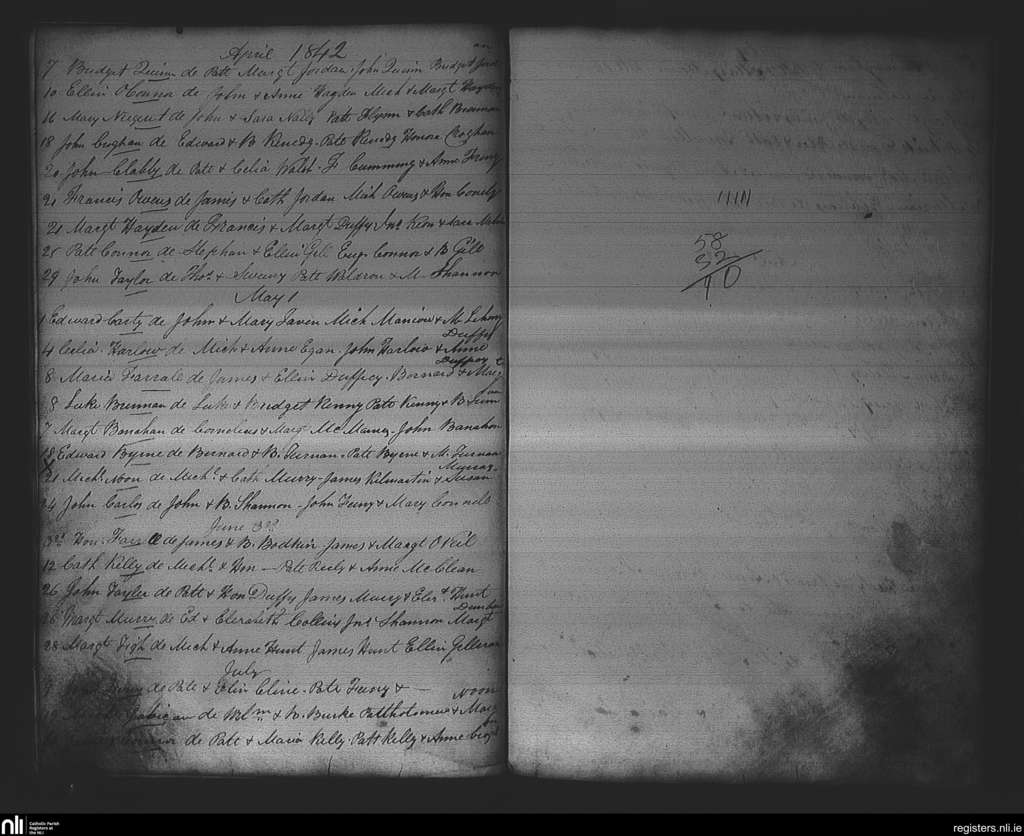 Strokestown; County of Roscommon; Diocese of Elphin. Baptisms, Apr. 1842 to July 1842