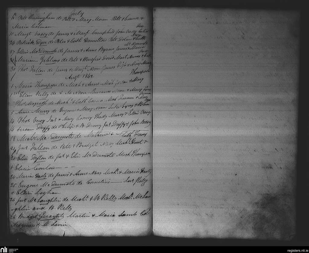 Strokestown; County of Roscommon; Diocese of Elphin. Baptisms, July 1842 to Aug. 1842