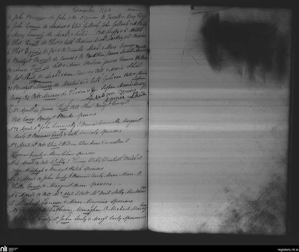 Strokestown; County of Roscommon; Diocese of Elphin. Baptisms, Apr. 1843 to Dec. 1843