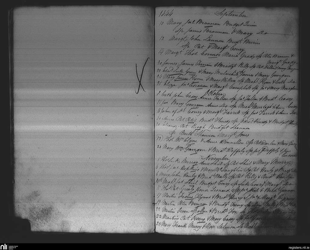 Strokestown; County of Roscommon; Diocese of Elphin. Baptisms, Sep. 1844 to Nov. 1844