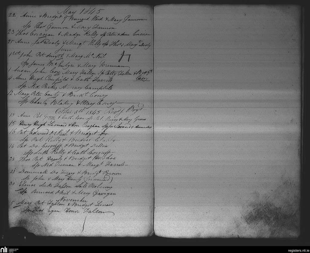 Strokestown; County of Roscommon; Diocese of Elphin. Baptisms, May 1845 to Nov. 1845