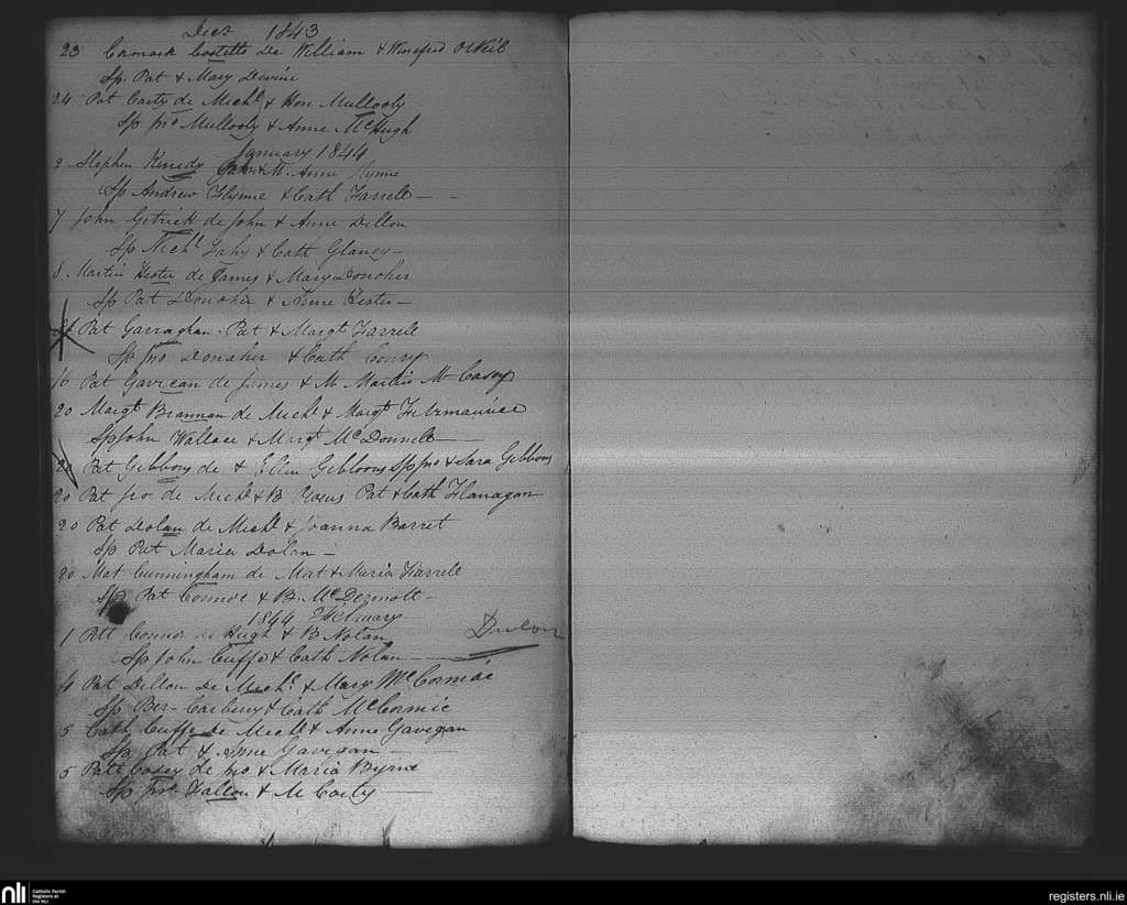 Strokestown; County of Roscommon; Diocese of Elphin. Baptisms, Dec. 1843 to Feb. 1844