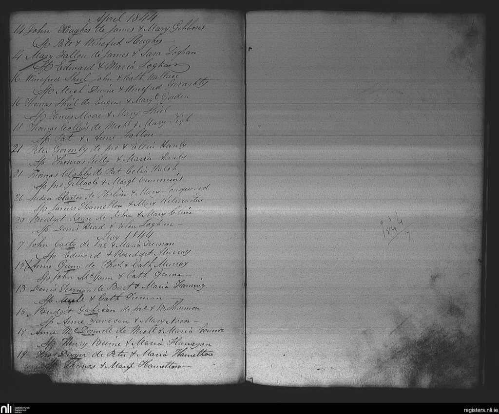 Strokestown; County of Roscommon; Diocese of Elphin. Baptisms, Apr. 1844 to May 1844