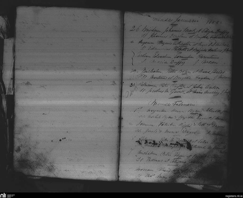 Strokestown; County of Roscommon; Diocese of Elphin. Baptisms, Jan. 1858 to Feb. 1858
