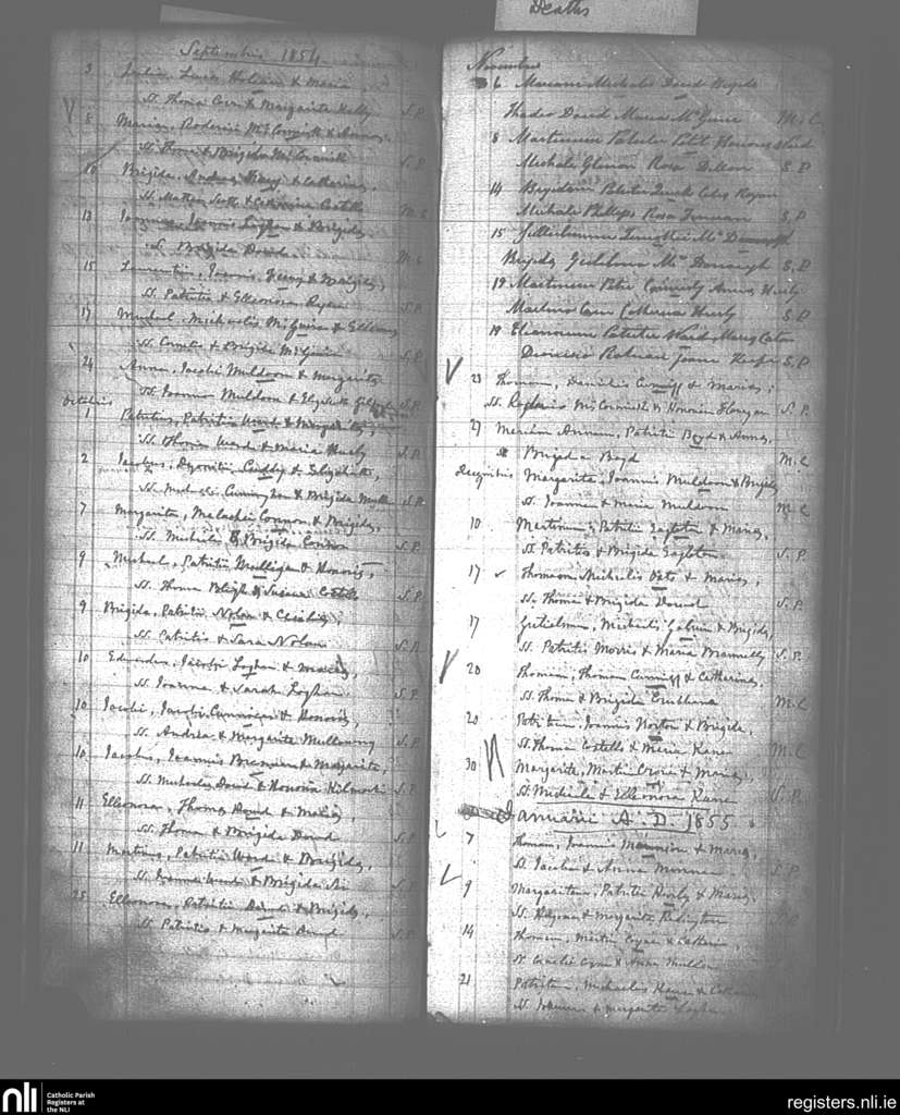 Glinsk; County of Roscommon, Galway; Diocese of Elphin. Baptisms, Sep. 1854 to Jan. 1855