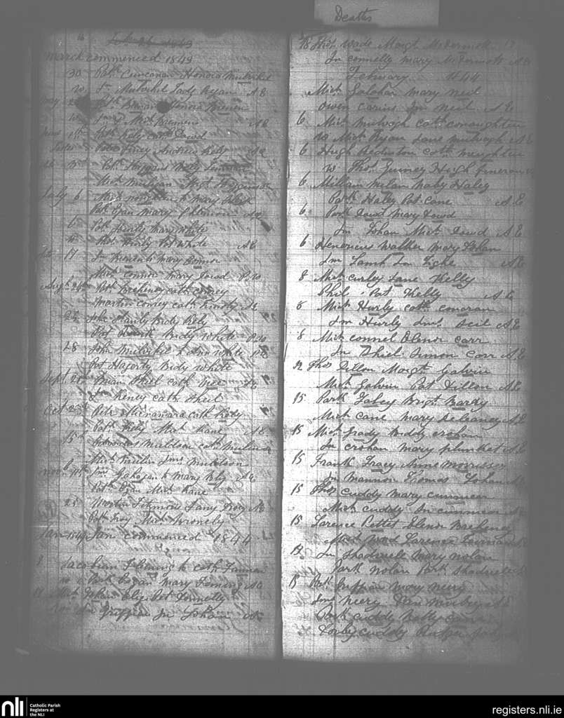 Glinsk; County of Roscommon, Galway; Diocese of Elphin. Marriages, Mar. 1843 to Feb. 1844