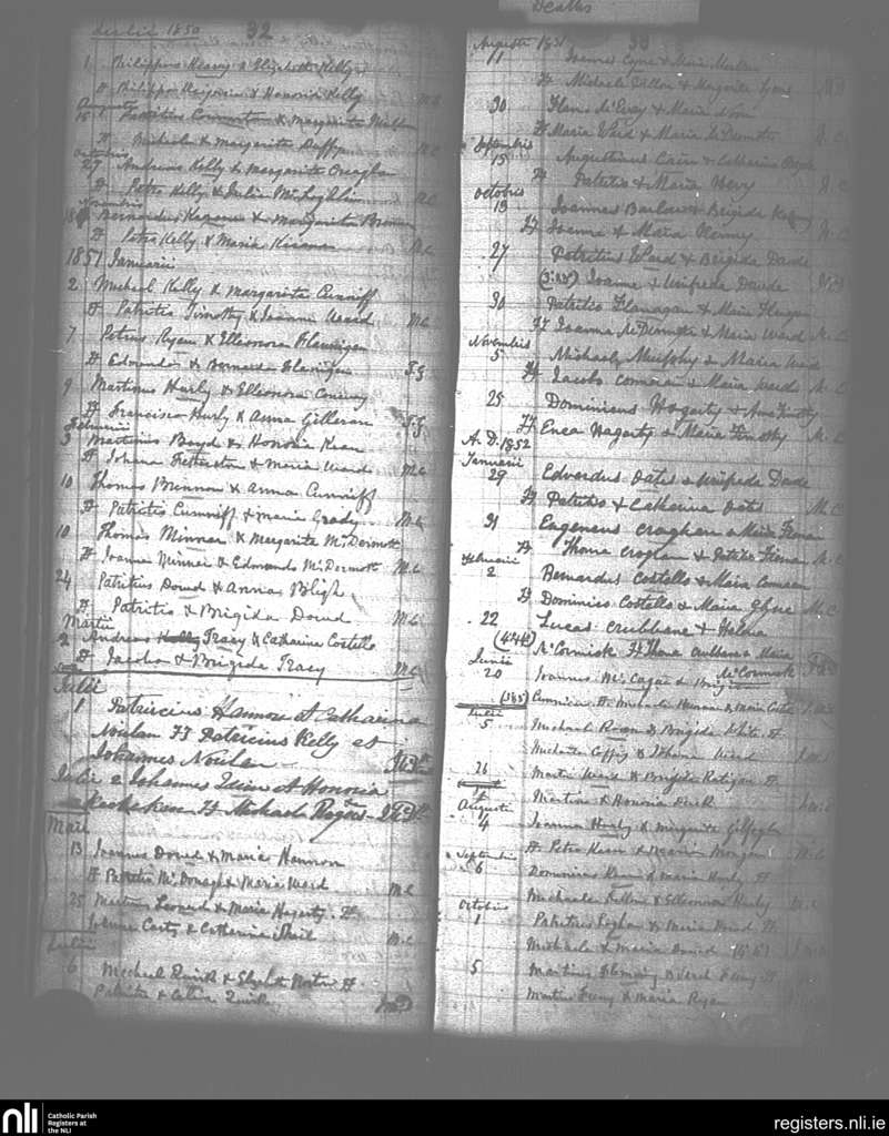 Glinsk; County of Roscommon, Galway; Diocese of Elphin. Marriages, July 1850 to Oct. 1852