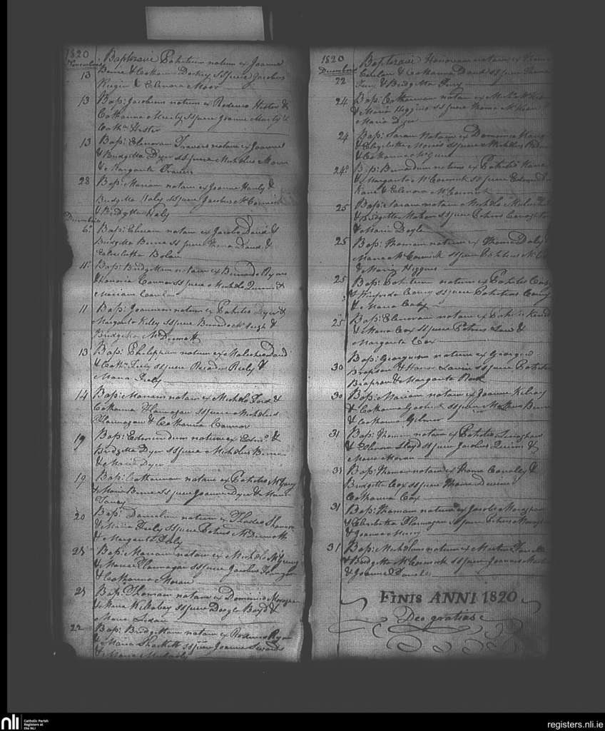 Killucan; County of Roscommon; Diocese of Elphin. Baptisms, Nov. 1820 to Dec. 1820