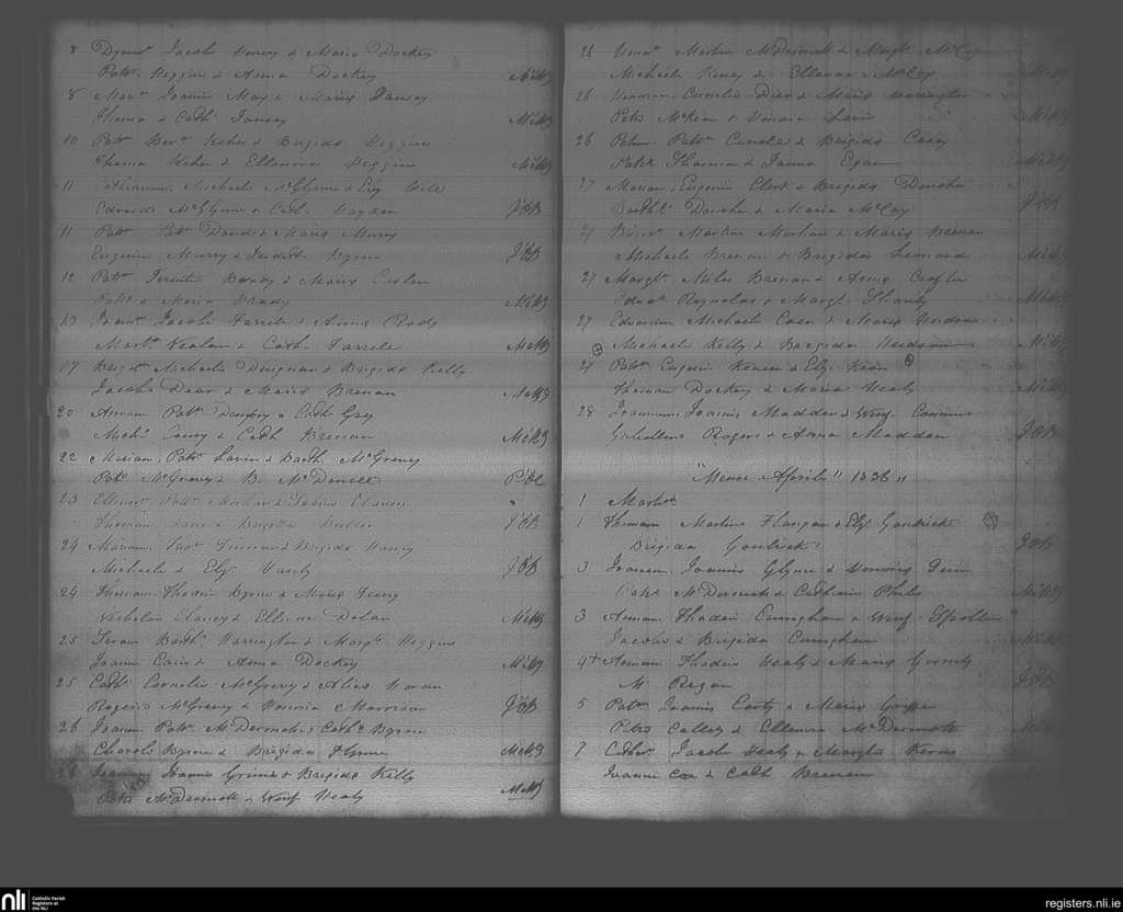 Killucan; County of Roscommon; Diocese of Elphin. Baptisms, Mar. 1836 to Apr. 1836