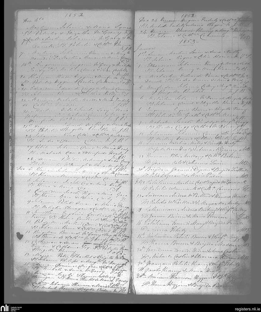 Killucan; County of Roscommon; Diocese of Elphin. Baptisms, Nov. 1852 to Feb. 1853